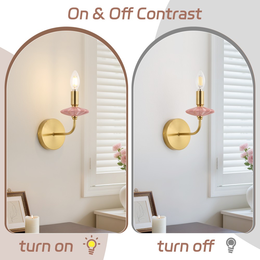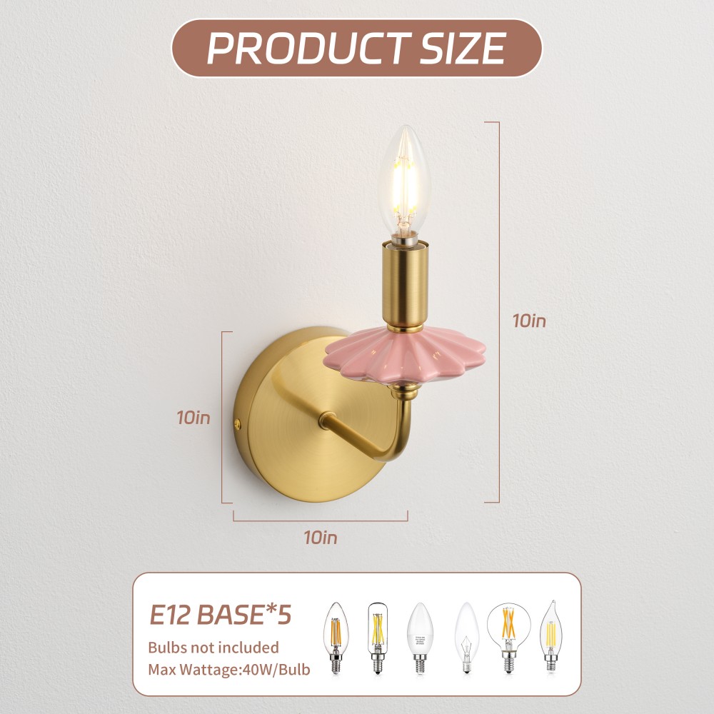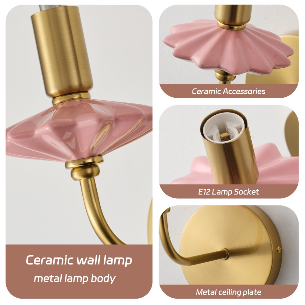 Toto kúpeľňové nástenné svietidlo, vyrobené z mäkkej ružovej keramiky a viacvrstvového pozláteného hardvéru, kombinuje klasický tvar sviečky s moderným ľahkým luxusným štýlom, majstrovským dielom silného osvetlenia spájajúceho keramické a kovové materiály. Keramické časti sú spracované vysokoteplotným glazovaním, vyznačujúce sa hladkým dotykom a odolnosťou voči vyblednutiu, zatiaľ čo pozlátené kovanie má vynikajúcu odolnosť proti oxidácii, vhodné na dlhodobé používanie aj vo vlhkom prostredí kúpeľne v prímorských oblastiach. Je vybavená päticou E12 a je kompatibilná s tradičnými a LED žiarovkami, podporuje maximálny výkon 40W na žiarovku. Teplé a studené biele svetlo je možné ľubovoľne prepínať a vytvárať rôzne atmosféry, s rozmermi d200xš110xv210 mm sa kompaktným rozmerom hodí na rôzne vnútorné steny.
